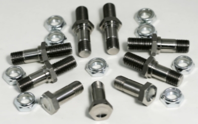 Mettec Titanium 6/4 studs have forged hex and rolled threads for better fatigue strength. Six screw in studs for Radius Rod and Front Panhard Rod to threaded frame bungs, Three 1/2-20 hex head bolts for the front axle raduis rods to front axle, plus 15pcs steel nylock nuts.